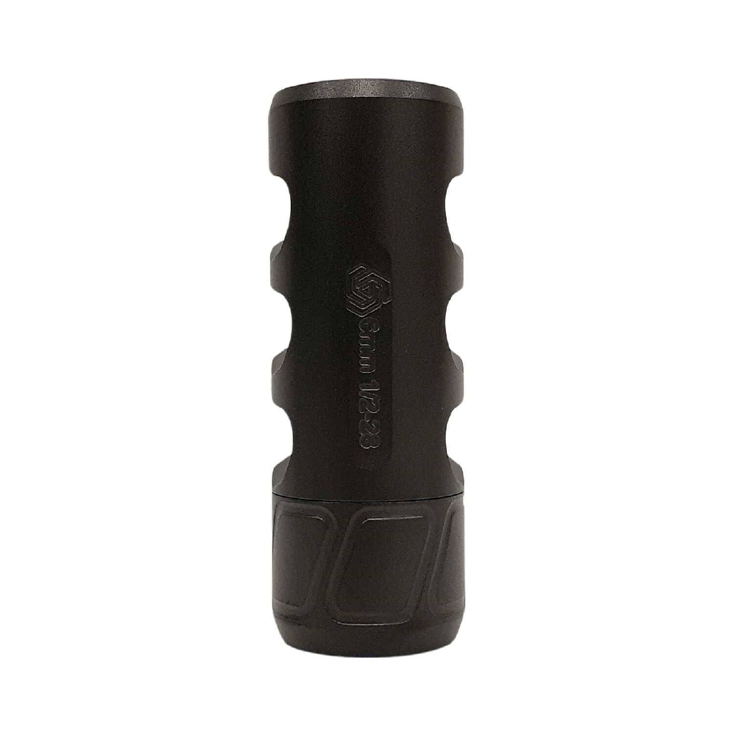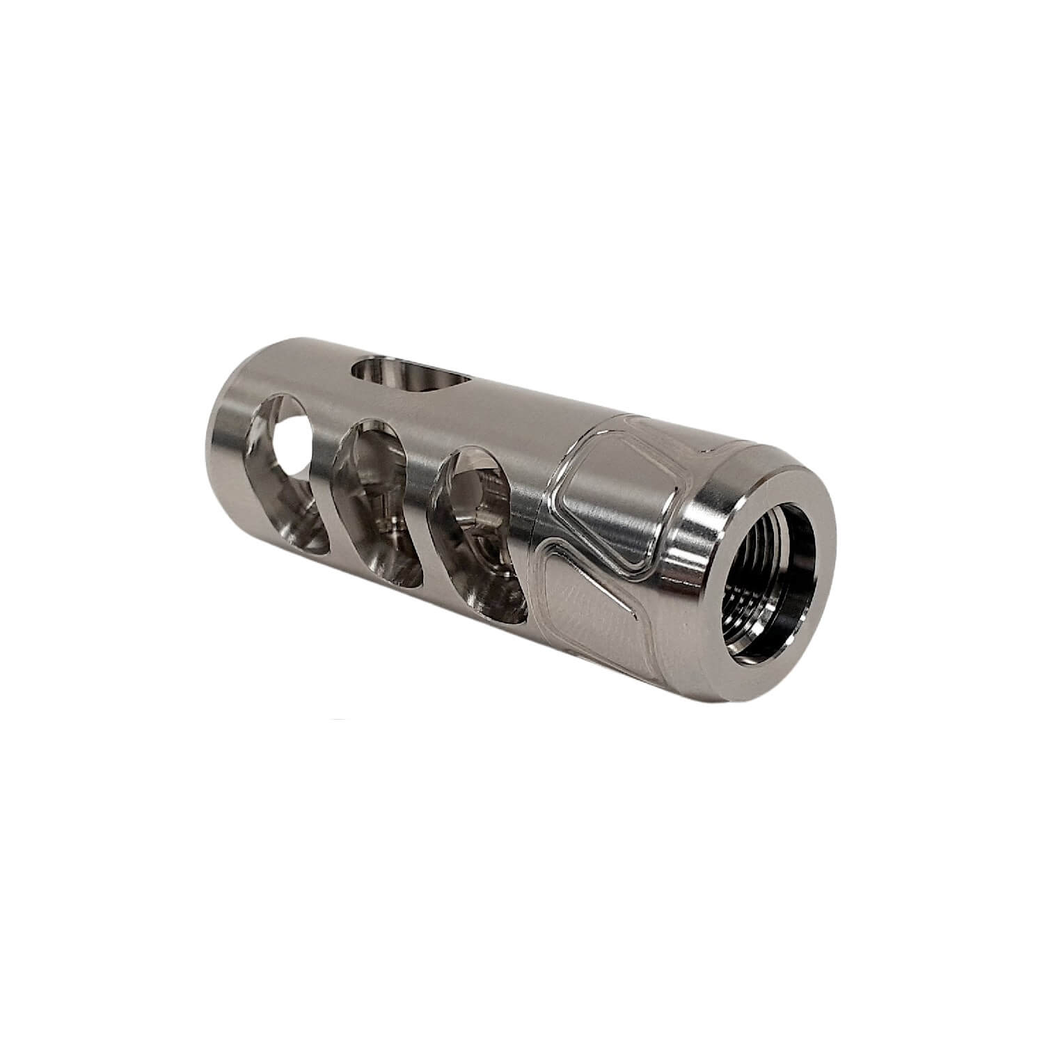 Designed for your lightweight hunting rifles and AR-15 black rifles. The sleek, low-profile brake matches well with thinner barrels. Superior performance assists for fast follow-up shots and target reacquisition. Great for hunting, varminting, or 3-gun. Minimizes ground blast and dust signature with ports placed above the centerline of bore. Perfect for your positional shooting disciplines, prone shooting and hunting. Deflects gas up and away from the user with raised, slanted ports while providing downward barrel compensation. Maximum recoil reduction for all day shooting comfort on the range. Features a proprietary linked port, effectively creating a double expansion chamber to distribute gases laterally more efficiently and effectively.